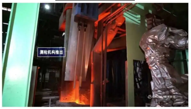 以工業機器人替代人工測溫取樣實現測溫取樣無人化,安全性能高了,工作效率高了,測溫取樣的穩定性、準確性更高了,冶煉過程更加的高效、標準、可靠。