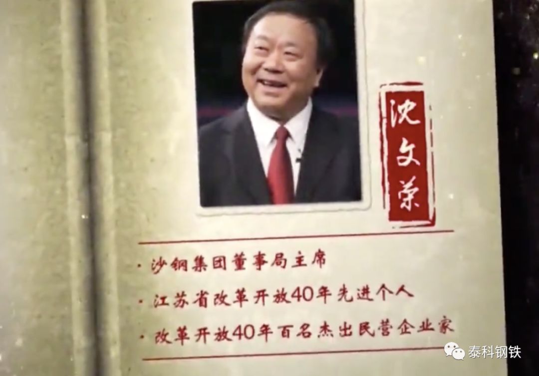2018年11月24日,全國工商聯在北京舉行新聞發布會,發布由中央統戰部、全國工商聯共同推薦宣傳的“改革開放40年百名杰出民營企業家”名單,沙鋼集團董事局主席沈文榮當選。 2018年12月18日下午,江蘇省委、省政府召開慶祝改革開放40周年座談會,沈文榮等二十人獲“為江蘇改革開放作出突出貢獻的先進個人”。 沈文榮用40年時間讓一家“草根企業”成功躋身為世界500強,近日蘇州廣播電視總臺對沈文榮做了一個專訪,節目一開始,看到沈文榮的辦公桌,小編就被震撼了...... 因長期過度勞累,他落下了一身病 辦公桌上最顯眼的就是一堆藥 雖然身體大不如以前 但對鋼鐵的熱愛, 讓沈文榮 一直放不下手中的工作! 上午7點到11點半 交流工作 出席會議 批改文件 沈文榮幾乎一刻沒有停歇 中午在食堂簡單用餐 加馬不停蹄地 帶隊去煉鋼現場 只要和鋼鐵有關 72歲的沈文榮似乎 總有說不完的話 使不完的勁! 總想著 做最新的 最好的 與美國紐柯公司合作開發超薄帶生產線 全國首家 正是這股勁 讓沙鋼 在改革開放中 始終勇立潮頭 △擁有8000米長江深水岸線的沙鋼長江貨運碼頭 上世紀80-90年代,在改革開放的浪潮中,曾經涌現了許多家喻戶曉的明星企業和明星企業家。如今,鄉鎮企業多數已經改制成為股份制企業或者私營企業,產權明晰之后繼續發展壯大,繼續煥發著生機和活力。 江蘇省張家港市沙洲鋼鐵廠就是這樣一家鄉鎮企業,改革開放之初,從45萬元自籌資金建廠開始,到如今成為中國最大的民營鋼鐵廠、世界500強企業,江蘇沙鋼集團的成長歷程生動展現了我國鄉鎮企業從“異軍突起”到“逐鹿世界”的發展之路。 從棉花加工到鋼窗料生產 沙鋼掘得第一桶金