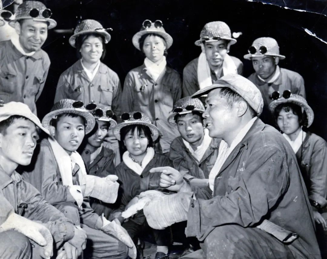 ▲ 上世紀70年代,轉爐老師傅給新入廠職工傳授煉鋼知識