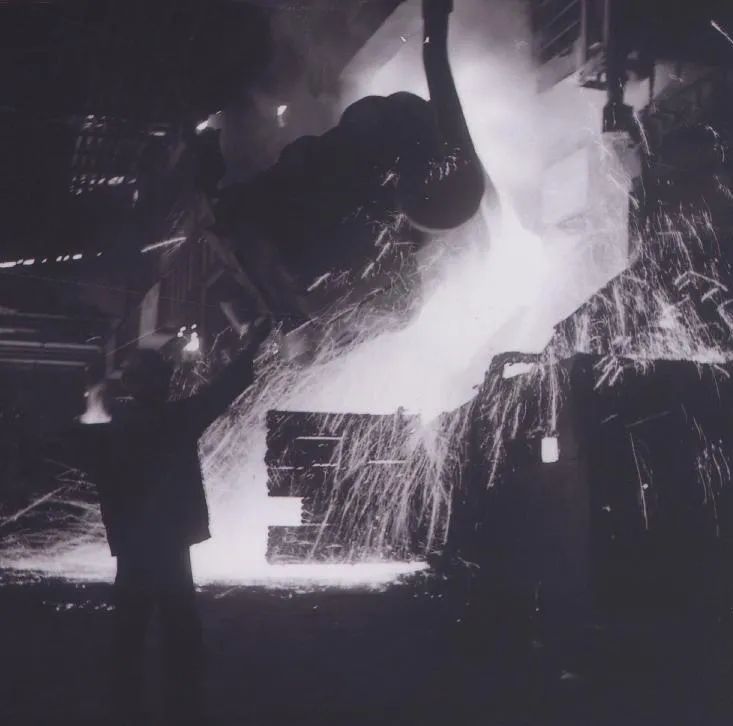 ▲ 上世紀70年代初,轉爐投產初期煉鋼工人在爐前學習