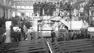 鞍鋼無縫鋼管廠穿孔機正在自動穿孔無縫鋼管