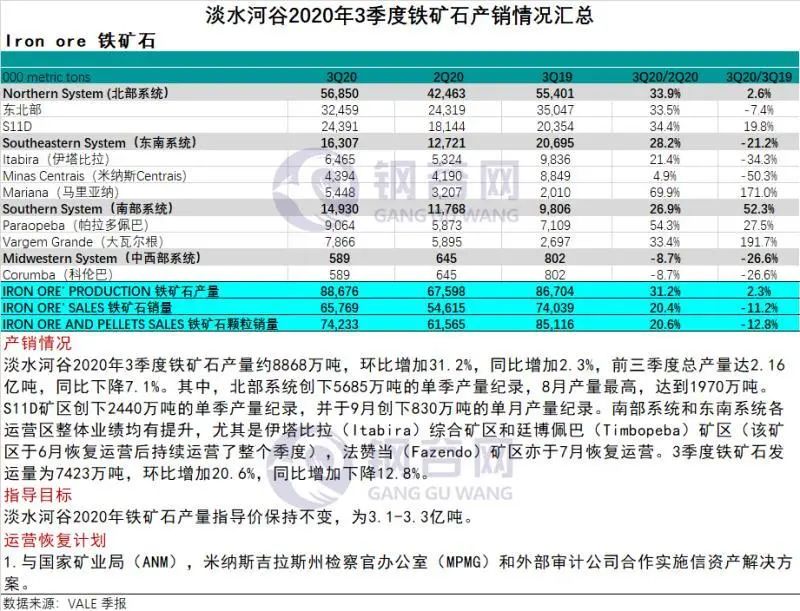 由Serra Norte,Serra Leste和S11D礦山組成的北方系統(tǒng)在2020年第三季度的產(chǎn)量為5685萬(wàn)噸,創(chuàng)下單季產(chǎn)量季度。