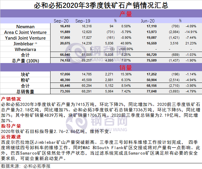 近期,淡水河谷與必和必拓2020年3季度報(bào)公布,其中,淡水河谷產(chǎn)量環(huán)比大增,必和必拓產(chǎn)量同比增加,后續(xù)繼續(xù)跟進(jìn)海外礦山3季度產(chǎn)銷動(dòng)態(tài)。