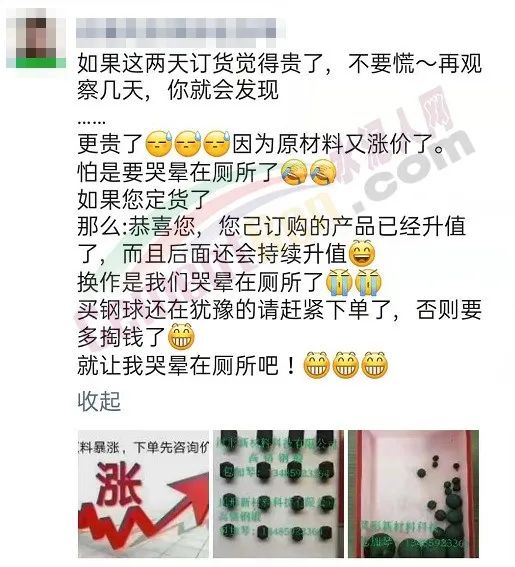 鋼球廠家通知:所有材料的漲價必然導致各類產品跟著上漲,鋼球也不例外,不能猶豫不絕,買到就是賺到,全憑下手早。如果這兩天訂貨覺得貴了,不要慌再觀察幾天更貴,因為原材料又漲價了。