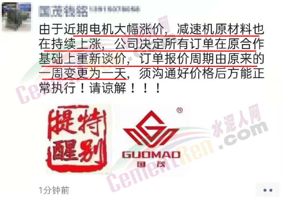 減速機廠家通知,由于近期電機大幅漲價,減速機原材料也在持續上漲,公司決定所有訂單在原合作基礎上重新談價,訂單報價周期由原來的一周變更為一天,須溝通好價格后方能正常執行!