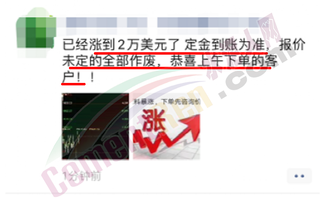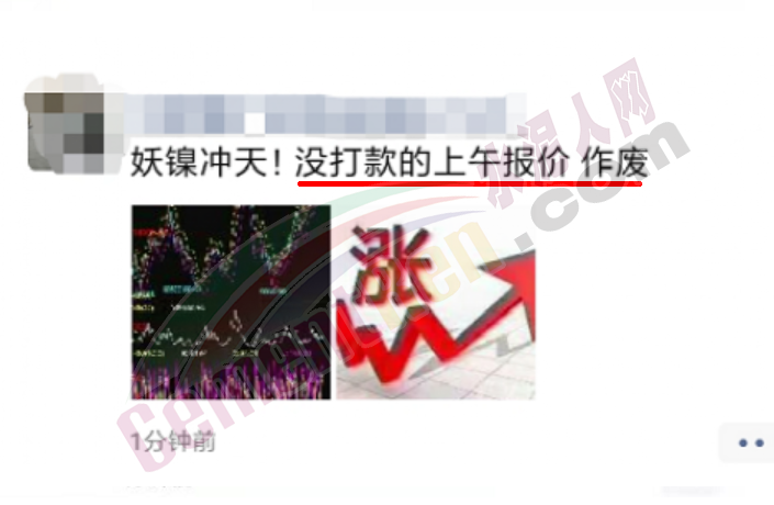 有企業發消息稱,暴漲的行情賣貨就跟打仗一樣,搶到就是賺到!!這次真的起飛了,漲勢太迅猛。銷售人員提醒下單的抓點緊呀!開工4天漲4天,今天的高價就是明天的低價,恭喜昨天下單的客戶!你還在猶豫嗎?再不出手就只能拍大腿了!