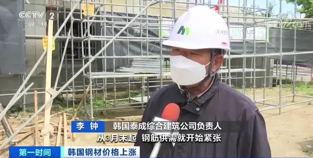 韓國(guó)泰成綜合建筑公司負(fù)責(zé)人 李鐘:從3月末起,鋼筋供需就開始緊張,施工現(xiàn)場(chǎng)遇到了很多困難。就算我們?cè)敢獬鲥X,正好需要的時(shí)候也不見(jiàn)得能拿到貨。
