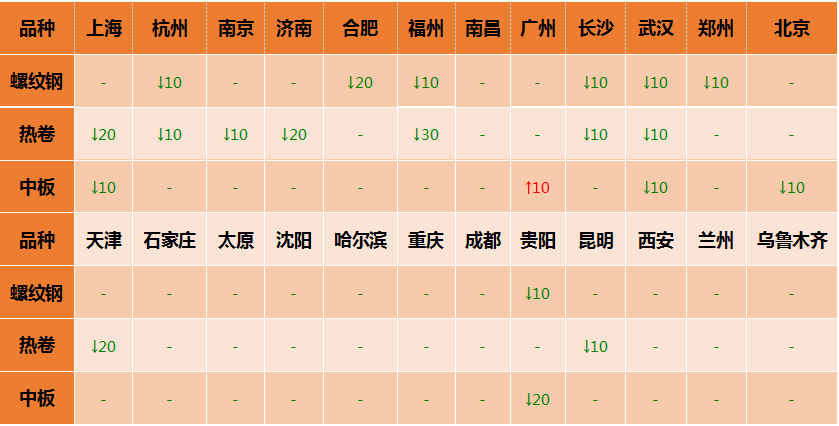 中板24個市場中4個市場下跌10-20,2個市場上漲10-20,14-20mm普中板平均價格3673元/噸,較上個交易日下調1元/噸。