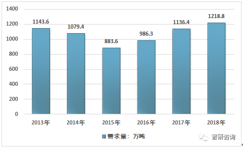 2018年我國彩鋼板行業需求量約1218.8萬噸,同比2017年的1136.4萬噸增長了7.25%。如下圖所示:
