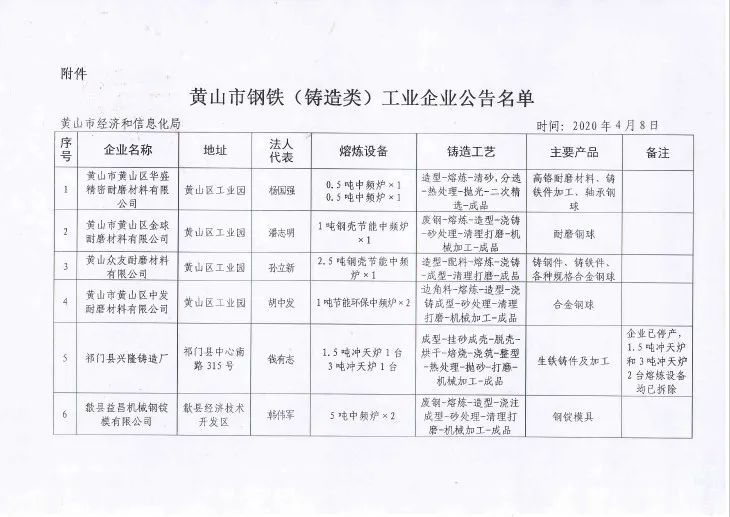 《公告》稱,黃山市各地全面深入開展鋼鐵行業違法違規產能專項整治工作,認真摸排全市鋼鐵行業相關企業基本情況。同時,《公告》對黃山市14家鋼鐵(鑄造類)工業企業基本情況進行公示,請社會各界對公示企業生產經營情況進行監督,一旦發現有違法違規生產銷售“地條鋼”行為,一經查處,將對企業和責任人進行嚴肅處理。