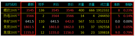 期螺小幅上漲8,收報3545,日線圖中MACD指標線繼續走平,并未走出震蕩格局。熱卷上漲5收報3566,上方3600壓力位依舊有效,短期難以突破3500-3600區間震蕩。原料端波動不大,鐵礦價格持穩,焦炭小漲1收報1861.5,焦煤上漲9收報1155。