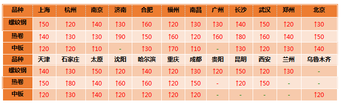 繼周六日鋼價上漲后,今日價格繼續上調。疊加周六日漲幅,最高上漲90。從成交來看,建材整體成交好于板材。