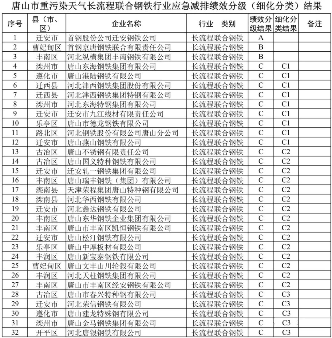 日前,唐山市6月份空氣質(zhì)量強化保障方案出爐,管控時限為2020年6月1日0時至6月30日24時。按此方案,績效評價為A、B級的鋼鐵企業(yè)不強制減排,績效評價為C級的鋼鐵企業(yè),將分區(qū)域、按影響執(zhí)行減排措施。