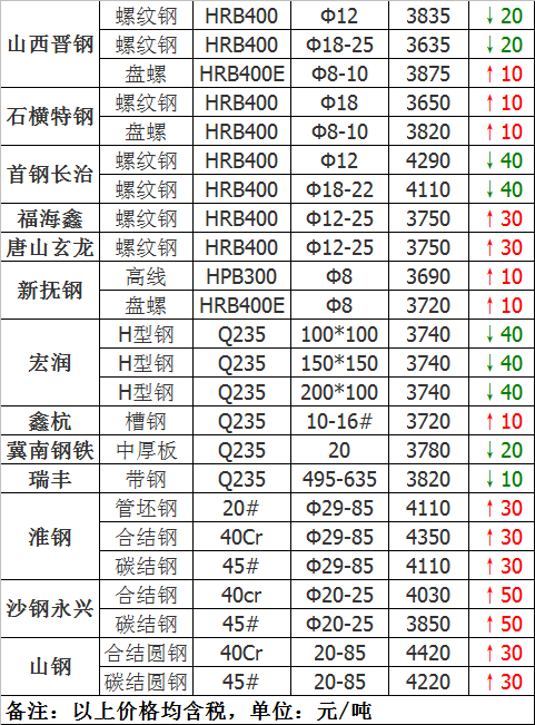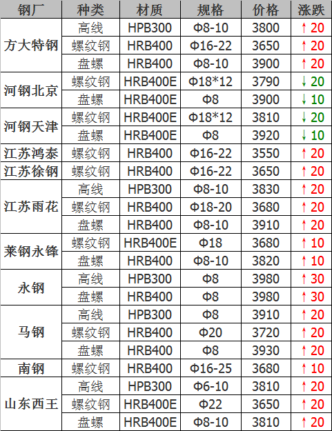 期鋼全面飄紅!鋼價(jià)漲聲再起! 39家鋼廠上調(diào)!最高漲130!