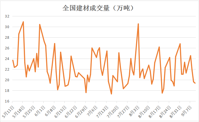 本周市場(chǎng)受期貨大跌影響,市場(chǎng)成交謹(jǐn)慎,終端觀望情緒較濃,建材成交略有回落,但仍保持19萬(wàn)噸的水平,反映需求韌性較強(qiáng)。且華東地區(qū)建筑用料水泥價(jià)格持續(xù)上漲,目前已恢復(fù)至上半年旺季水平,意味著建筑需求逐步釋放。后市鋼價(jià)仍有支撐。