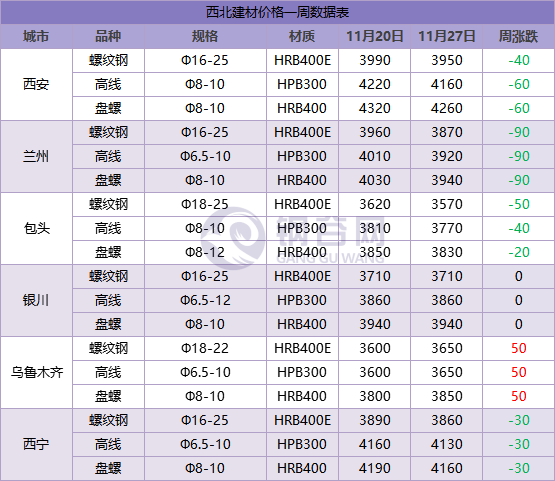從西北市場表現(xiàn)情況來看,市場需求表現(xiàn)一般的情況下,市場多處于“有價(jià)無市”狀態(tài),部分商家基于自身資金等壓力困擾,市場價(jià)格下跌,因此商家看空情緒漸濃,資源快速獲利套現(xiàn)意愿增強(qiáng),市場價(jià)格出現(xiàn)小幅震蕩下跌。加之建材市場已漸漸進(jìn)入休市淡季,無論是鋼廠還是商家大多已無心進(jìn)行操作,所以市場資源開始對外批量進(jìn)行分流,大多以盤螺資源為主。