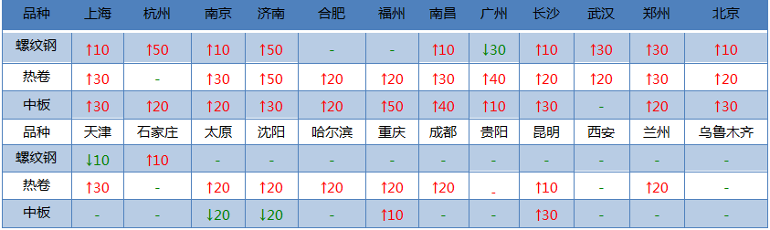 螺紋鋼24個市場中10個市場上漲10-50, 20mmHRB400E平均價格4100元/噸,,較上個交易日上調9元/噸;
