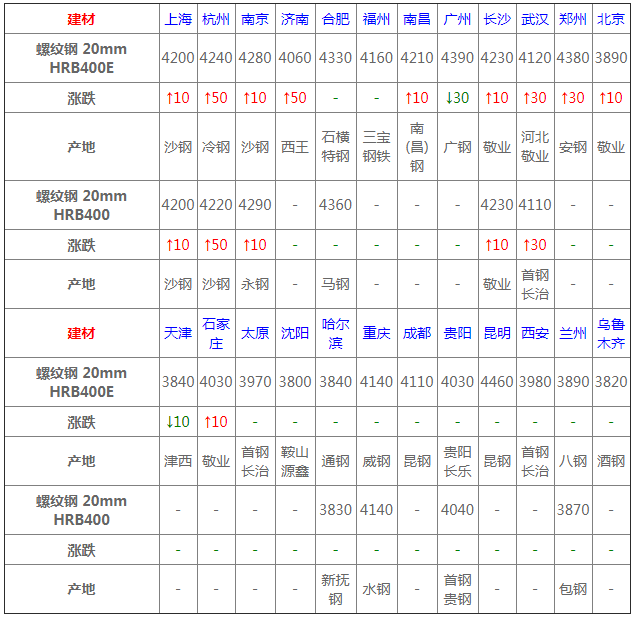 12月16日建材價(jià)格:漲10-50;