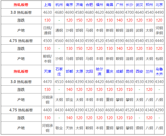 12月16日熱軋板卷價(jià)格:漲10-50;
