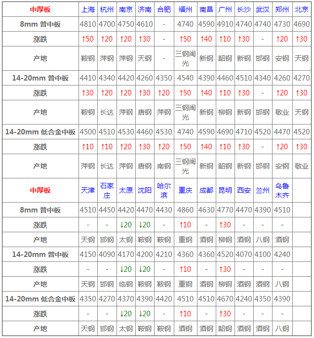 12月16日中厚板價(jià)格:窄幅整理;