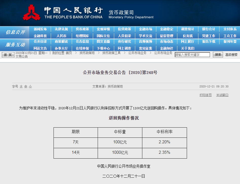 2、央行開展1100億元逆回購操作 實現凈投放900億元