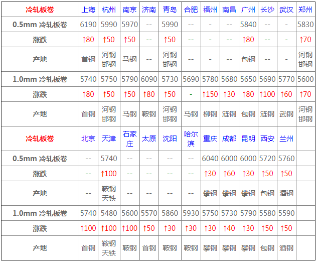 今冷軋市場重回強勢。早盤鋼坯連續上調,加之今日期盤沖高向上的提振下,市場情緒迅速回溫,部分終端也重新入場采購,可見當前價格確實易漲難跌。據悉短期內仍無大量資源入市補充,加之兩會即將召開,故預計短期冷軋卷板價格偏強向上可能較大。