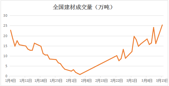 由于今年市場(chǎng)價(jià)格持續(xù)高位,終端接收度較低,市場(chǎng)觀望情緒濃厚,成交量反復(fù),最新數(shù)據(jù)顯示,全國(guó)建材成交持續(xù)回升,但日均最高僅在25萬(wàn)噸,低于旺季30萬(wàn)噸水平,下游需求并未充分釋放。