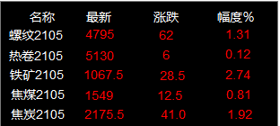 昨日黑色商品期貨全線飄紅,原燃料品種漲幅居前。鐵礦石2105合約大幅走強,午收1067.5漲2.74%。期螺2105合約高開震蕩,午收4795漲1.31%;期卷2105合約高開震蕩,午收5130漲0.12%。焦煤2105合約震蕩走強,午收1549漲0.8199%;焦炭2105合約震蕩走強,午收2175.5漲1.92%。唐山鋼坯昨日漲50元,今上午兩次累積漲40,現報4690元/噸出廠。網優廢鋼統計25日5漲48跌,今早0漲24跌。