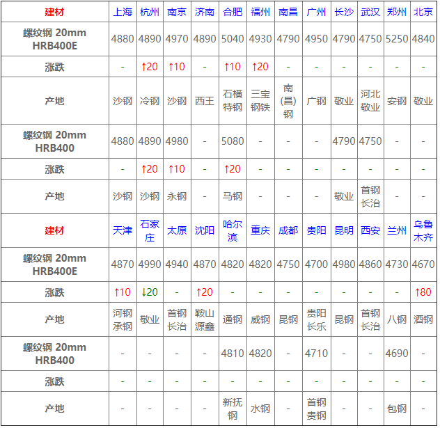 4月1日建材價(jià)格:偏強(qiáng)震蕩;