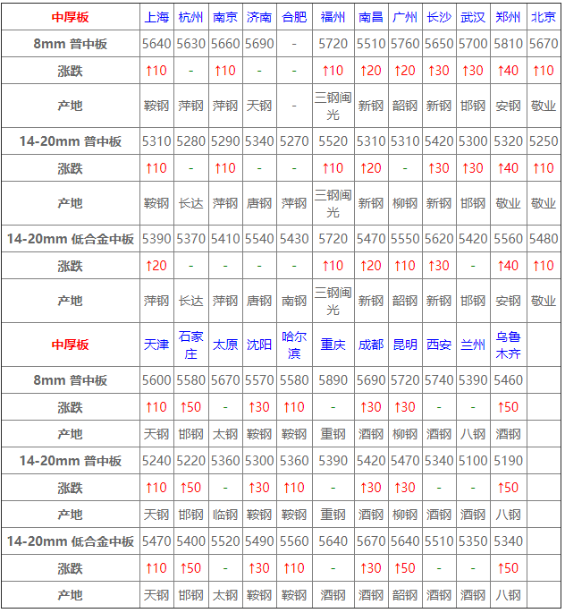 4月1日中厚板價(jià)格:繼續(xù)上漲;