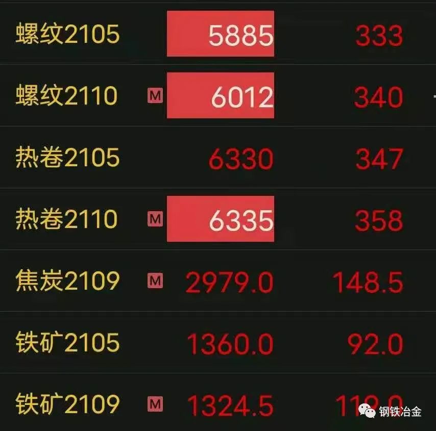 全瘋了!鐵礦石10%漲停1326元!熱卷6335元漲停!全國鋼貿圈震驚……