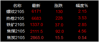 昨日黑色系大宗商品期貨價格繼續全線大漲,螺紋鋼價格漲勢重燃,高點觸及6200,收市突破6100,鐵礦石盤中觸及1358,再創歷史新高,熱卷以五連陽之勢繼續向7000大關發起沖擊。期螺上漲130收報6171,期卷上漲228收報6683,鐵礦石上漲37收報1337,焦煤上漲92收報2111.5,焦炭上漲15.5收報2865。唐山鋼坯昨日漲100元,今上午漲50,現報5820元/噸出廠。網優廢鋼統計12日81漲6跌,今早61漲3跌。