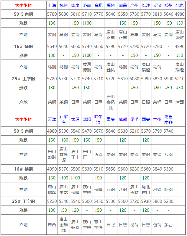 6月1日中厚板價格:主流下調;