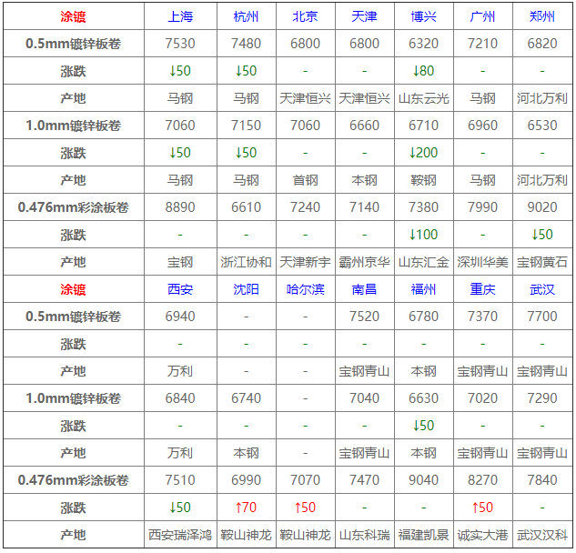 今全國帶鋼下行整理,華北主導鋼廠降50-80,唐山窄帶累降100-150不等,整體一般有弱,僅個別可,華東華南弱勢整理,交投不佳。