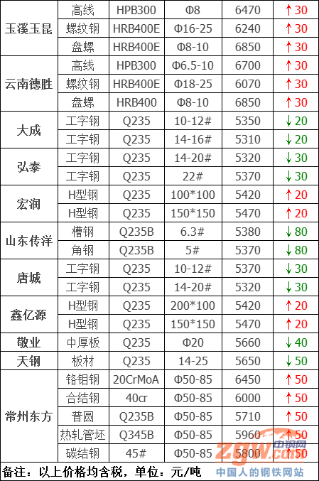 據數據監測,今日共26家鋼廠調價,其中漲幅最高為常州東方優鋼,調價幅度50元/噸,跌幅最大為山東傳洋型材,調價幅度80元/噸,具體調價明細如下: 鋼廠調價 西王特鋼建材價格平穩 福海鑫螺紋鋼價格平穩 山西高義建材價格平穩 馬鋼建材上調30-40元/噸 長江鋼鐵建材上調20元/噸 玉溪仙福建材上調40元/噸 云南德勝建材上調30元/噸 玉溪玉昆建材上調30元/噸 河鋼北京建材上調20元/噸 河鋼天津建材上調10元/噸 方大特鋼建材上調30元/噸 江蘇雨花建材上調20元/噸 石橫特鋼建材下調50元/噸 萊鋼永鋒建材下調50元/噸 江蘇鴻泰螺紋鋼下調10元/噸 江蘇徐鋼建材價格下調10元/噸 電力槽鋼價格平穩 宏潤H型鋼上調20元/噸 鑫億源H型鋼上調20元/噸 弘泰工字鋼下調30元/噸 唐城工字鋼下調30元/噸 大成工字鋼下調20元/噸 山東傳洋型材下調80元/噸 天鋼板材下調50元/噸 敬業中厚板下調40元/噸 常州東方優鋼上調50元/噸 鋼廠調價占比 上調12家,占比46.2%,調價幅度10-50元/噸。 下調10家,占比38.5%,調價幅度10-80元/噸。 平穩4家,占比15.3%。 價格簡評 今日鋼廠價格漲跌穩均現,期螺高位運行。鋼廠出貨情況一般,市場高位資源交投表現疲軟,商家心態隨行就市出貨,終端則以剛需補庫為主。由于近期市場價格拉漲過快,客戶接受程度有限,成交一般,考慮鋼坯端有力支撐,預計短期鋼廠價格偏強震蕩運行。