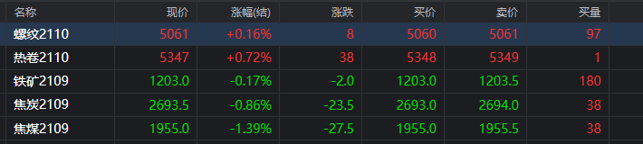 受此影響,期鋼午后漲幅急速收縮,期螺上漲8收報5061,期卷上漲38收報5347,鐵礦石下跌2收報1203,焦煤下跌27.5收報1955,焦炭下跌23.5收報2693.5。