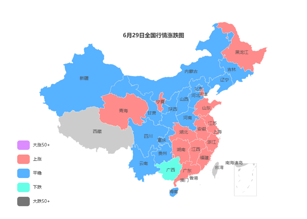 6月29日鋼鐵價(jià)格漲跌圖:偏強(qiáng)運(yùn)行