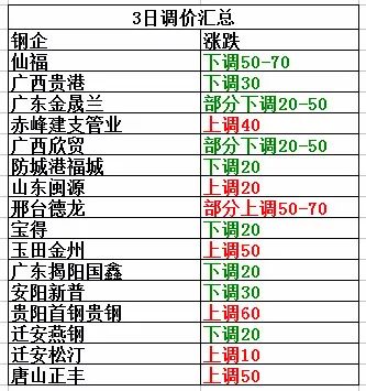7月3日遷安燕鋼下調20,調后優質3700,優質一3690,重型一3700,重二3680,重A3660,重B3600,重C3560,中A3620,中B3540,中C3500,小型3255,統料2955,優質鑄鐵3540,普通鑄鐵3340,1級剪切料3510,2級剪切料3470,3級剪切料2920,不含稅。