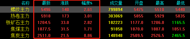 本周受外圍原油價格大漲和國內限產預期加強的影響,鋼價漲超100。期貨持續走高,現貨投機性需求增加。根據中鋼網平臺數據顯示,本周螺紋鋼均價周漲139,熱卷均價周漲201,中板均價周漲116。與此同時,周五央行宣布全面降準的消息令市場熱情高漲,期鋼夜盤大幅拉漲,黑色系全面走高。期螺上漲140收報5496,期卷上漲173收報5918,鐵礦石上漲33收報1204.5,焦煤上漲31.5收報1877.5,焦炭上漲21.5收報2511。現貨看漲情緒繼續推升。