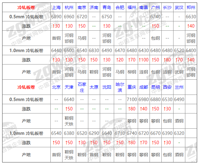 3 7月19日冷軋板卷價格:主流上漲; 今全國冷軋偏強運行,幅度20-100,市場補漲的情況較多,周末部分市場已經出現跟漲乏力的現象,今期貨持續拉漲;