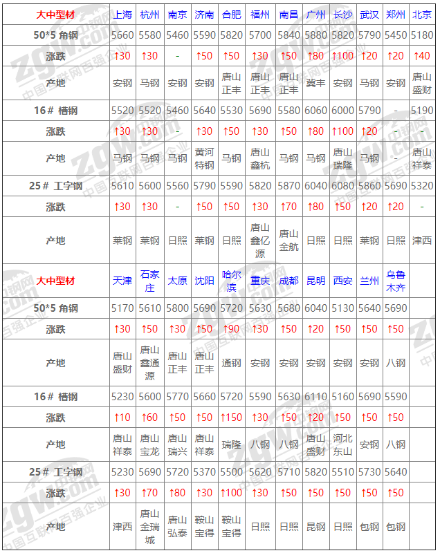5 7月19日熱帶價格; 穩中上漲; 今全國熱帶價格穩中上漲,幅度20-50左右,市場交投氛圍平平,商戶普遍觀望出貨,終端補庫需求寥寥。考慮觀望情緒未改,預計明或高位盤整; 6 7月19日型材價格:主流上行; 今型價主流上行,幅度20-100,時值傳統淡季,高溫多雨天氣影響,下游工地采購意愿明顯降低,終端商戶多觀望或按需補庫,成交難有實質性放量。預計短期型材市場將堅挺運行為主;