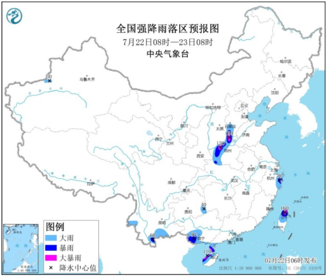 中央氣象臺7月22日繼續發布暴雨黃色預警:預計7月22日08時至23日08時,河北西南部、河南西北部、廣西南部、廣東雷州半島、海南島西北部、云南南部、浙江中北部沿海、臺灣島中北部等地的部分地區有大到暴雨,此次暴雨主要集中在華北和華東沿海區域,下游開工將受到影響,采購相對謹慎,成交繼續偏弱,鋼價上行仍有阻力。