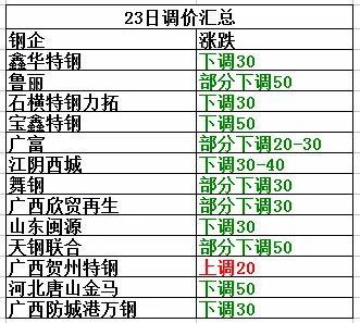 7月23日起石橫特鋼力拓公司含1%增-值稅價格下調30:重型3470,鋼筋頭3520,工業下腳料3570,薄花料3640,管頭花料3660,鋼筋壓塊3660,特級破碎料3510。