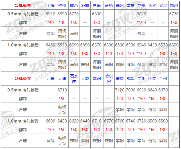 7月30日冷軋板卷價格:主流上漲;