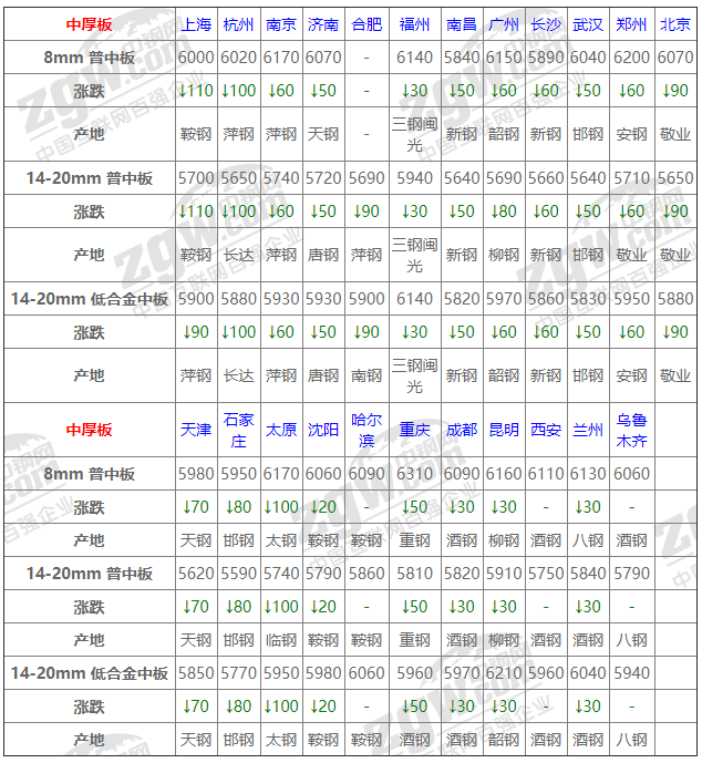 4 8月2日中厚板價格:主流偏弱; 今全國中板主流偏弱,幅度30-110,市場整體成交一般,期貨大幅下跌,上游大戶紛紛跟調,下游客戶看跌心態滋生,今日出手較少。預計短期市價或穩中偏弱整理;
