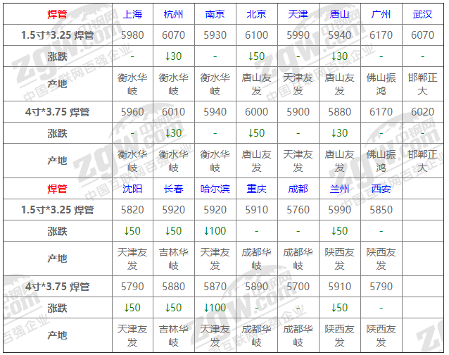 7 8月2日管材價格:穩中偏弱; 今價穩中偏弱,成交不佳。成本支撐不足,終端需求難以釋放,市場成交表現偏弱,下游商家隨行就市為主,預計明穩中調整。