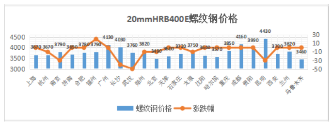 【螺紋鋼】螺紋鋼部分市場繼續(xù)下跌10-50,全國23個(gè)主要市場螺紋鋼20mm HRB400E平均價(jià)格3796元/噸,較上個(gè)交易日下調(diào)7元/噸。【熱卷】熱卷跌幅10-20,全國24個(gè)主要市場4.75熱軋板卷平均價(jià)格3649元/噸,較上個(gè)交易日下調(diào)9元/噸。