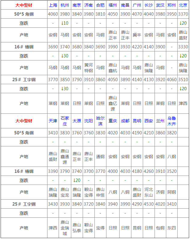 Periquito 三個礦區(qū))生產,該舉將影響淡水河谷至少10%的產量。 1 6月8日建材價格:穩(wěn)中小漲10-20元/噸; 今建材價格主流偏強,早盤期螺持紅震蕩,加之鋼坯端今晨拉漲20提振市場信心,普遍跟隨上調10-20左右。漲后市場交投氛圍平平,商戶心態(tài)普遍觀望為主,下游用戶對高位接受有限。考慮成本端堅挺,建材價格繼續(xù)小漲為主。 2 6月8日熱軋板卷價格:觀望整理10-20元/噸; 今日熱卷現(xiàn)貨主流上行,全國66.67%主流城市調漲,漲幅10-50元/噸,其中天津地區(qū)熱卷價格趨高20左右報價3680-3700。熱卷商家雖積極拉漲,但下游采貨商家并未買賬,多謹慎觀望,短期熱卷市場高位盤整。 3 6月8日冷軋板卷價格:盤整運行; 今日冷軋市場主穩(wěn)運行,商家調價謹慎。據了解,今天期貨與鋼坯上行,目前商家心態(tài)謹慎樂觀為主。不過高價位同樣導致下游客戶拿貨的積極性有所減退,價格持續(xù)上漲市場接受度較低。短期冷軋卷板價格盤整觀望。 4 6月8日中厚板價格:堅挺運行; 今中厚板現(xiàn)貨價格小幅偏強。從了解的情況來看,主要受期鋼拉漲提振,然終端用鋼需求有限,漲后成交整體一般,大戶商家逢高積極出貨。受成本鐵礦石價格上漲帶動,且黑色系期螺高開高走,商家心態(tài)積極,鋼坯市場交投向好支撐商家盼漲心態(tài)增強,短期內中厚板或高位堅挺運行。 5 6月8日熱帶價格:堅挺整理10-20元/噸; 今熱帶市價主流偏強,因北方行情上漲且鋼坯端堅挺運行,貿易商報價普遍偏堅挺。從商戶口中得知,市場成交表現(xiàn)疲軟,商戶操作隨行就市,終端用戶剛需為主。考慮北方行情偏強,故預計短期帶鋼價格或堅挺整理。 6 6月8日型材價格:穩(wěn)中調整10-30元/噸; 今型價穩(wěn)中趨漲。需求釋放不濟,但鋼坯支撐上揚,市場挺價意愿漸濃,中間商補庫積極性尚可,短期型價將小幅偏強調整。 7 6月8日管材價格:堅挺偏強; 原料端強勢上漲,提振市場心態(tài),管市價格主流拉漲,目前市場需求不大,整體成交表現(xiàn)一般偏弱,僅個別大廠能維持正常出貨量,市場詢價多拿貨謹慎,觀望情緒仍濃,考慮原料端支撐強勁,預計后市管材價格堅挺偏強運行。