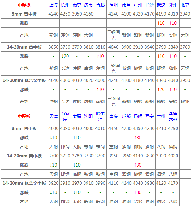 6月9日中厚板價格:穩中調整;