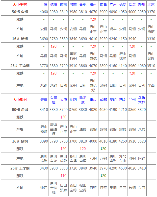 6月9日型材價格:穩中調整10-30元/噸;